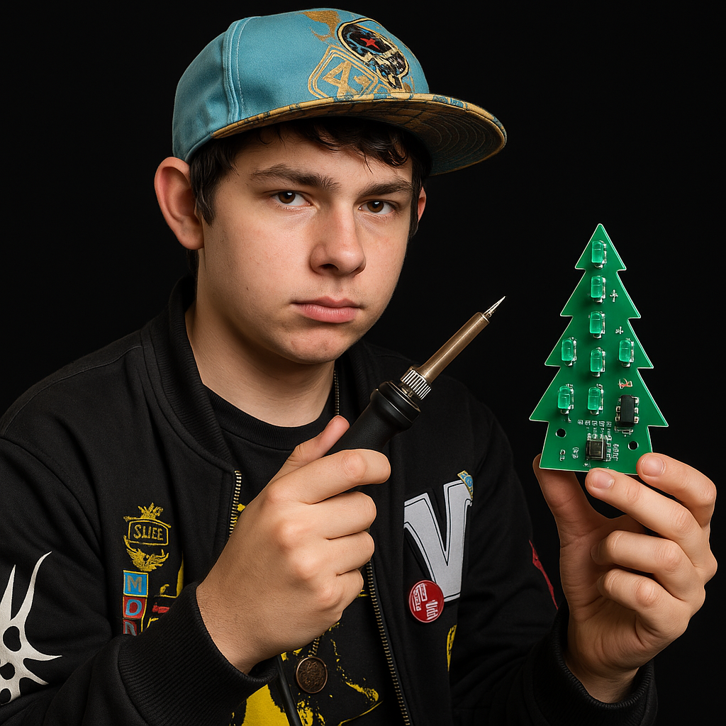 Each Tiny LED Tree is hand-soldered by him from an electronics kit, then tested, and sold with care. |